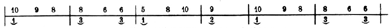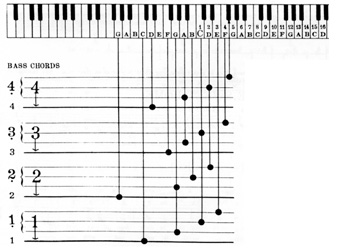 You will notice that the melody numbers are not spaced equal distances apart. They are arranged thus to convey to you the idea of the time on each tone. The bass number is played, of course, at the same time the melody number directly above it is played.